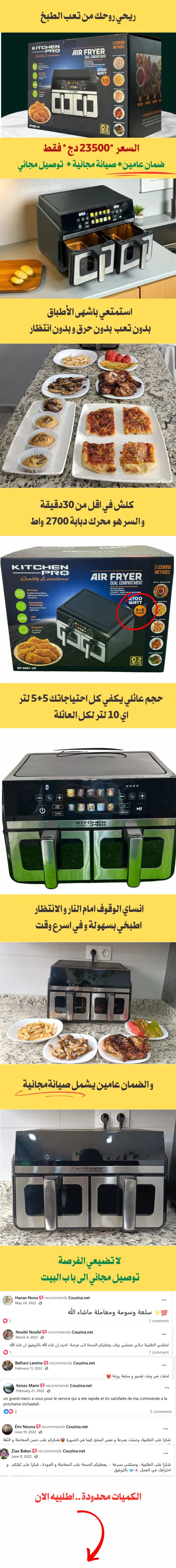 مقلاة هوائية عائلية 10 لتر بضمان سنتين